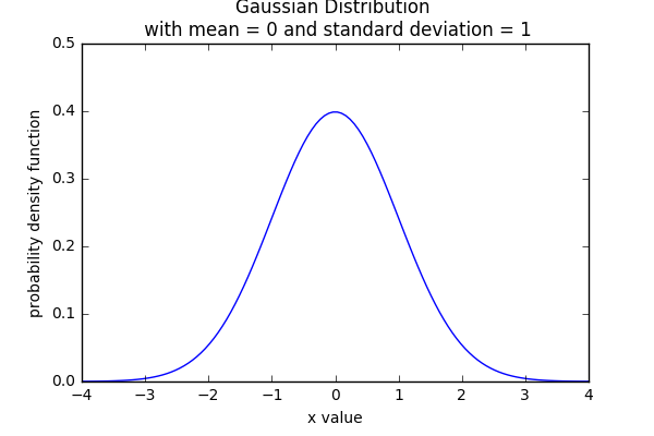 尽管这条曲线看上去难以绘制,但有一个方程可以在 x 变量和 y 变量之间建立映射关系。下面是高斯分布的概率密度函数: