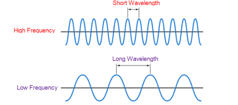 The frequency of a wave is the number of waves that pass by each second, and is measured in Hertz (Hz). The automotive radar generally operates at W band (76GHz - 81GHz). The signal at this frequency is referred to as millimeterWave since the wavelength is in mm.