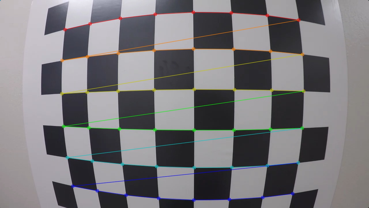 cv2.drawChessboardCorners(img, (nx, ny), corners, ret)